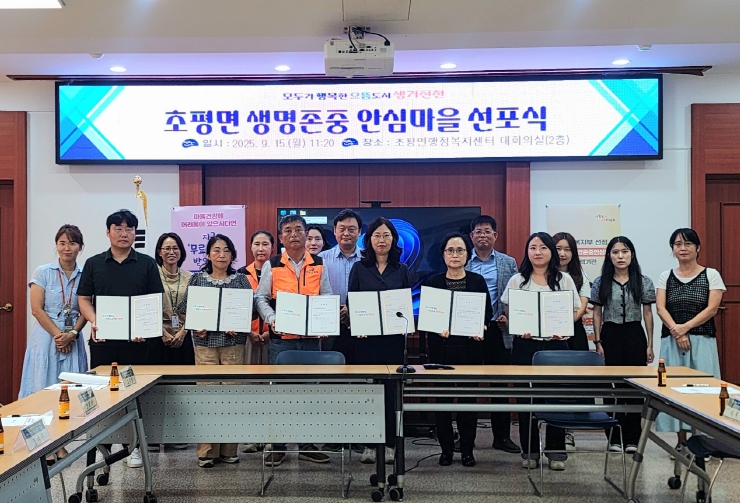 이번 선포식에는 초평면 행정복지센터를 비롯한 생명 존중 안심마을 사업 9개 참여기관 기관장 등 총 20여 명이 참석했으며, 지역사회 자살 예방을 위한 협력 의지를 다졌다.