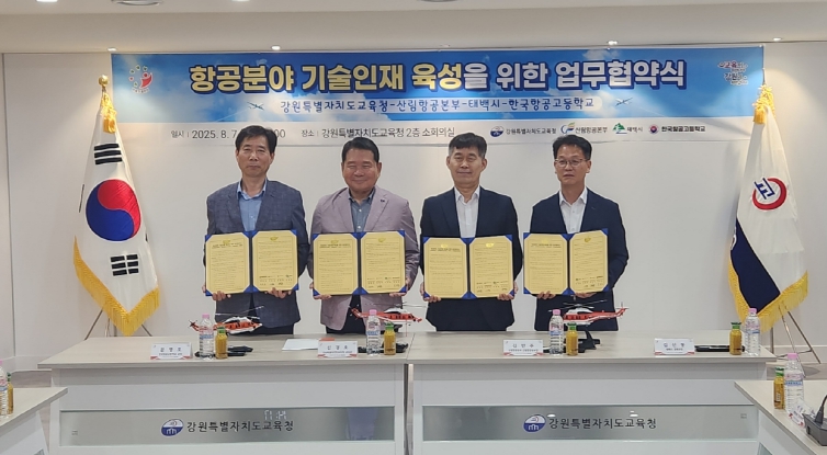 [뉴스노크=김인호 기자] 태백시는 8월 7일, 강원특별자치도교육청, 산림항공본부, 한국항공고등학교와 함께 항공분야 기술인재 육성을 위한 업무협약을 체결했다고 밝혔다.