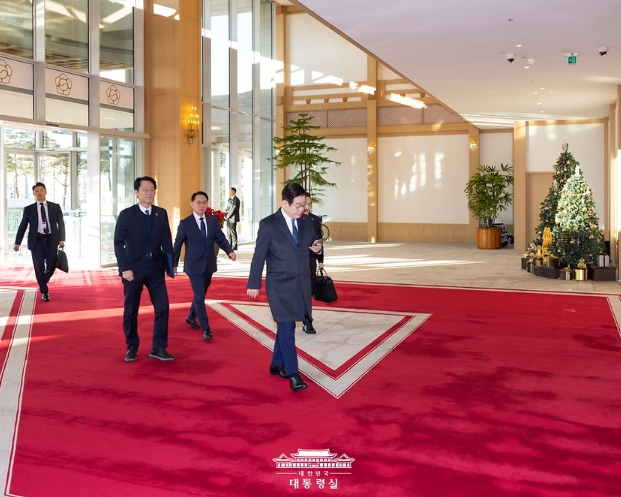 [뉴스노크=김인호 기자] 이재명 대통령이 26일 청와대 복귀를 앞두고 용산 대통령실로 마지막 출근을 하고 있다.