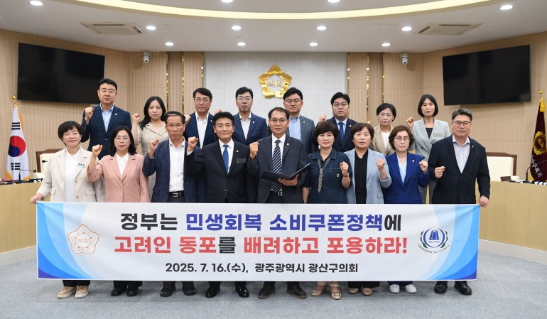 광산구의회는 김영선 의원(더불어민주당, 수완동·하남동·임곡동)이 대표발표한 성명서를 통해 “정부의 전 국민 대상 소비쿠폰 지급 정책은 내국인 중심 설계로 지역사회에 깊게 뿌리내린 고려인 동포 등 수많은 외국인 주민이 배제됐다”고 지적했다.