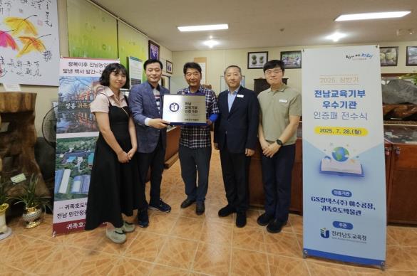 [뉴스노크=김인호 기자] 전라남도교육청은 2025년 상반기 교육기부 인증기관으로 GS칼텍스㈜ 여수공장, 귀족호도박물관을 재지정하고, 28일 인증패 전수식을 가졌다.
