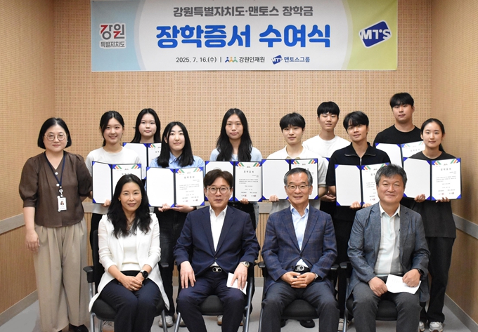 [뉴스노크=김인호 기자] 강원인재원과 맨토스그룹은 7월 16일, 춘천 강원인재원에서 '2025년도 강원특별자치도·맨토스 장학금' 수여식을 개최했다.