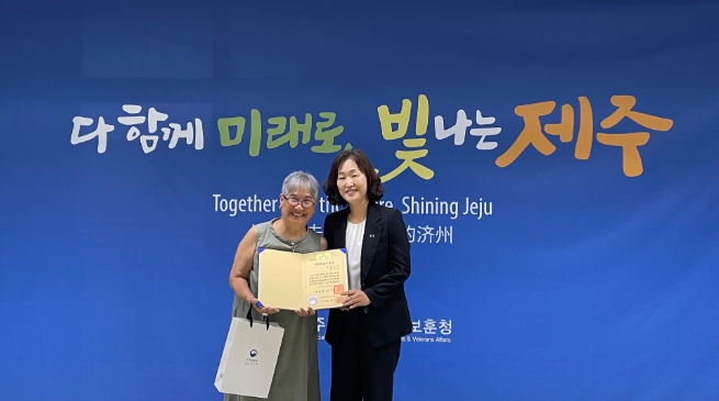 [뉴스노크=김인호 기자] 제주특별자치도 보훈청은 2013년 건국훈장 애국장을 추서받은 애국지사 고(故) 임정구 선생의 외손녀 선우 브렌다 백 씨에게 국가유공자 유족 증서를 수여했다.