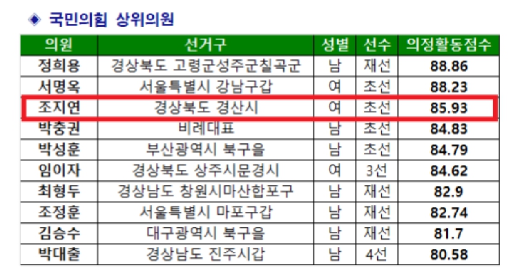 법률소비자연맹은 22대 국회 1차년도 국회의원 의정활동 정밀분석 결과를 발표해 우수 국회의원 75명을 수상자로 선정했다. 특히 조 의원은 의정활동점수를 순위별로 매긴 국민의힘 상위 의원 3위에도 이름을 올렸다.