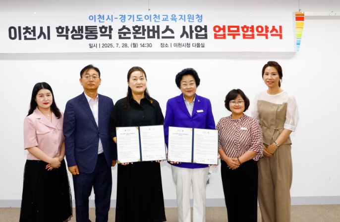 [뉴스노크=김인호 기자] 이천시와 경기도이천교육지원청은 7월 28일 이천시청에서 ‘2025년 학생통학 순환버스 지원 시범사업’의 원활한 추진을 위한 업무협약을 체결했다고 밝혔다.