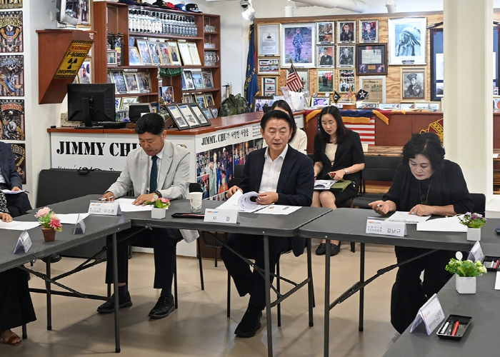 ▲ 김동근 시장이 9월 10일 의정부 기억저장소에서 흥선권역 현장 티타임을 진행하고 있다. |