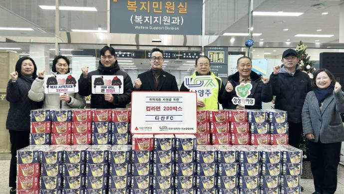 다산 FC 회원들이 자발적으로 마련한 컵라면 200개는 지역사회보장협의체를 통해 지역 내 도움이 필요한 이웃에게 배분될 예정이다.