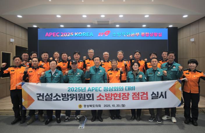 박순범 위원장은 “APEC 정상회의는 경북의 역량을 대외적으로 보여주는 국제행사인 만큼 충분한 소방 인력과 장비를 지원하고, 권역별 현장관리와 기본수칙을 잘 지켜 세계 최고의 K-소방, 가장 안전한 APEC 경주가 될 수 있도록 최선을 다해 줄 것”을 주문하고, “앞으로 도의회에서도 소방 인프라 현대화 등 현장의 목소리가 정책과 예산에 반영될 수 있도록 최선을 다하겠다”고 밝혔다.
