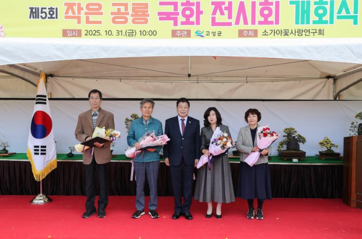 이상근 고성군수는 “소가야꽃사랑연구회와 더불어 5회째를 맞이하는 작은공룡 국화 전시회를 통해 관람객들이 깊어가는 가을의 아름다움을 만끽하기 바라며, 고성군 국화분재가 더 많이 알려질 수 있는 기회가 될 수 있으면 좋겠다”라고 전했다.