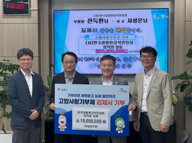 [뉴스노크=김인호 기자] 김제시는 22일 한국생활환경석면협회 임직원 10명이 고향사랑기부금 1,000만원을 기탁했다고 밝혔다.