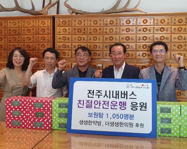 [뉴스노크=김인호 기자] 전주시는 완산구 중화산동에 위치한 생생한약방이 무더운 여름철 시내버스 운전원들의 건강과 안전 운행을 위해 총 1050명분의 기력 회복용 한약 ‘보원탕’ 후원했다고 22일 밝혔다.