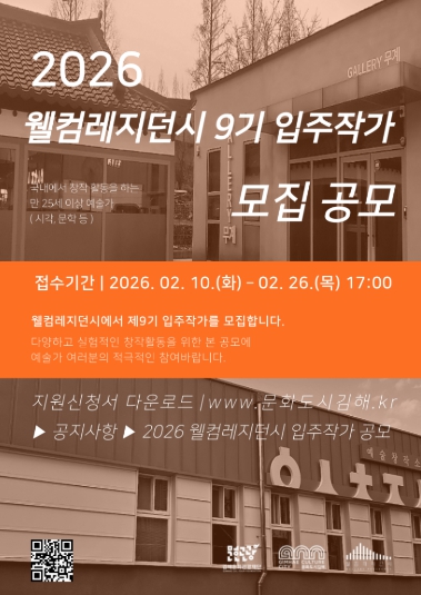 [뉴스노크=김인호 기자] (재)김해문화관광재단(대표이사 최석철) 김해문화도시센터는 오는 10일부터 26일까지‘2026 웰컴레지던시 제9기 입주작가’를 모집한다.