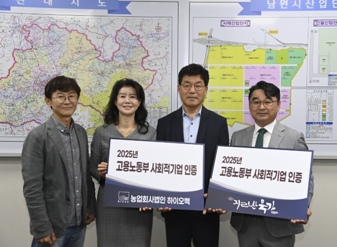 [뉴스노크=김인호 기자] 남원시는 2025년 제3차 고용노동부 사회적기업 심사 결과, 지리산맑은물춘향골영농조합, 농업회사법인(유)하이오백 2개소가 사회적기업으로 인증됐다고 밝혔다.
