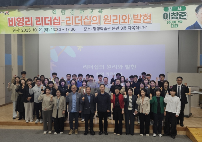 [뉴스노크=김인호 기자] 남원시는 10월 21일 오후 1시 30분부터 평생학습관 3층 다목적 강당에서 민간사회복지 종사자 70여명이 참석한 가운데 '비영리 리더십 – 리더십의 원리와 발현'을 주제로 2025년 민간사회복지사 역량강화교육 5회차 마지막 교육을 성황리에 마쳤다.