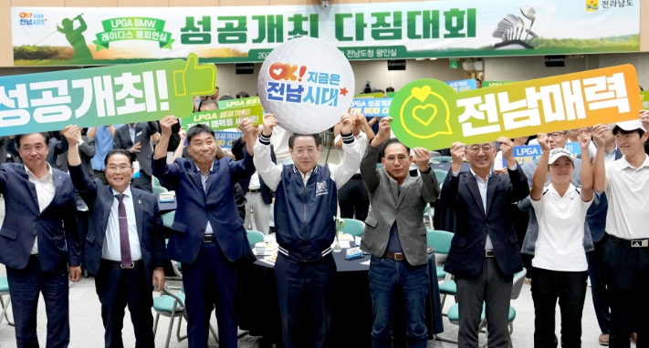 [뉴스노크=김인호 기자] 전라남도는 22일 도청에서 김영록 전남도지사, 서남권 6개 시군 음식·숙박·관광업계 대표, 함평골프고 학생, 체육관계자 등 200여 명이 참석한 가운데 LPGA BMW 레이디스 챔피언십 성공개최를 위한 다짐대회를 열었다.