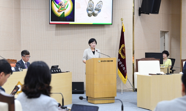 [뉴스노크=김인호 기자] 한윤희 광산구의원(정의당, 수완동·하남동·임곡동)이 22일 열린 제298회 광산구의회 임시회 제2차 본회의에서 5분 자유발언을 통해 광산구 대표 문화예술 콘텐츠로 ‘노동미술제’ 개최를 제안했다.