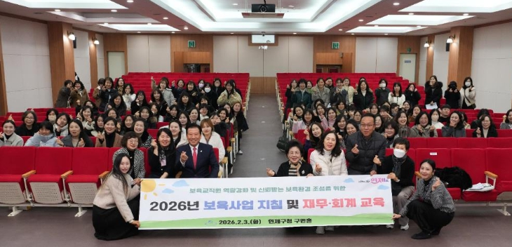 [뉴스노크=김인호 기자] 연제구는 지난 2월 3일 연제구청 구민홀에서 관내 어린이집 원장 및 보육교사 120여 명을 대상으로 ‘2026년 보육사업 지침 개정사항 및 재무·회계 교육’을 실시했다.