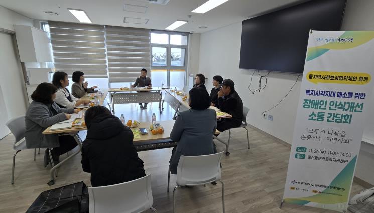 [뉴스노크=김인호 기자] 울산 중구지역사회보장협의체 장애인분과가 11월 26일 오전 11시 울산장애인통합지원센터 교육실에서 ‘복지사각지대 해소를 위한 장애인 인식 개선 소통 간담회’를 개최했다.