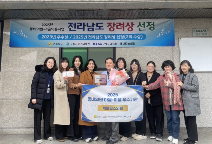 [뉴스노크=김인호 기자] 구례군 정신건강복지센터는 전라남도 통합정신건강증진 사업인‘동네의원 마음이음사업’ 동네의원 부문에서 관내 세브란스의원이 장려상을 수상했다고 밝혔다.