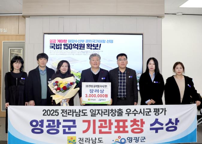 [뉴스노크=김인호 기자] 영광군은 12월 24일 여수시 엑스포 컨벤션센터에서 열린 ‘전라남도 일자리․경제 한마당’ 행사에서, 2025년 전라남도 일자리 창출 우수 시․군 평가 ‘장려상’을 수상했다.