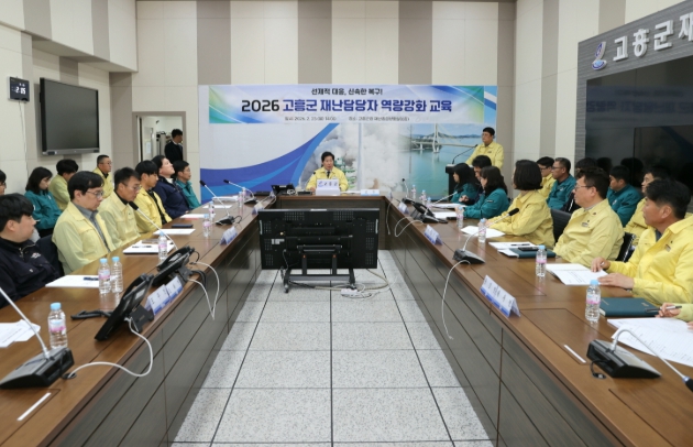 [뉴스노크=김인호 기자] 고흥군은 23일 군청 재난종합상황실에서 읍·면 재난업무 팀장과 담당자 등 40여 명을 대상으로 ‘2026년 재난업무 담당자 역량강화 교육’을 실시했다고 밝혔다.