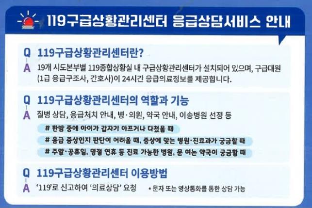 | ▲ 119구급상황관리센터 응급상담서비스 안내 |