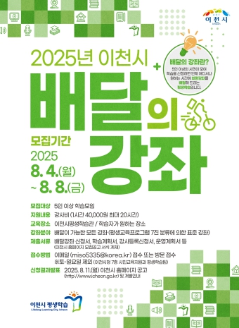 ▲ 2025년 이천시 평생학습 ‘배달의 강좌’ 학습팀 모집 |