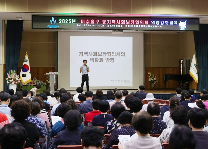 [뉴스노크=김인호 기자] 인천 미추홀구는 22일 구청 대회의실에서 관내 동 지역사회보장협의체위원들을 대상으로 ‘복지 더하기 미추홀구 동 지역사회보장협의체 힘을 더하다!’라는 주제로 역량 강화 교육을 실시했다.