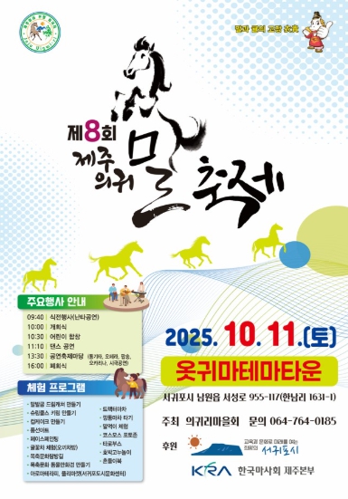 [뉴스노크=김인호 기자] 서귀포시는 ‘헌마공신 김만일’을 기리고, 제주 전통마와 지역 목축문화를 널리 알리기 위한 제8회 의귀말 축제가 오는 11일 옷귀마테마타운 일원에서 개최된다고 밝혔다.