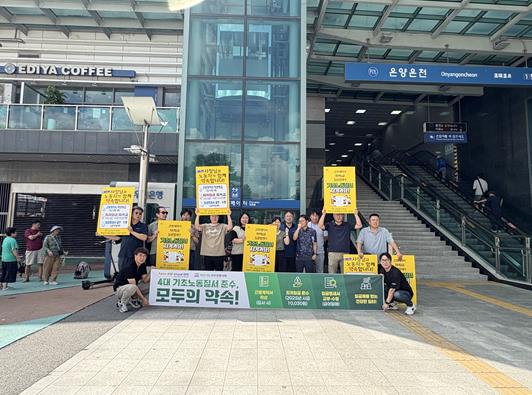 [뉴스노크=김인호 기자] 아산시노사민정협의회는 8월 29일 온양온천역 광장 일대에서 기초노동질서 확립을 위한 캠페인을 실시했다.