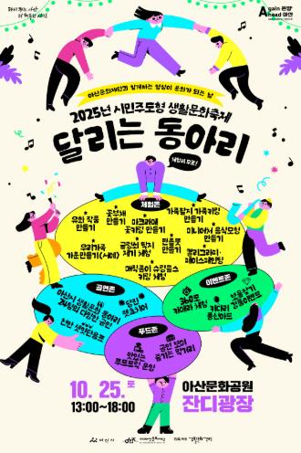 [뉴스노크=김인호 기자] (재)아산문화재단은 오는 10월 25일 13시부터 18시까지 아산문화공원 잔디광장에서 시민이 주체가 되어 즐기는 ‘2025년 시민주도형 생활문화 축제 '달리는 동아리'’를 개최한다.