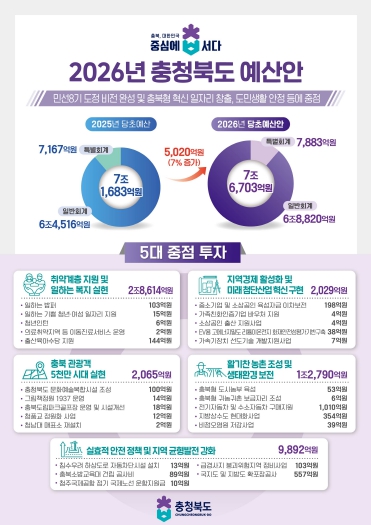 충북도, 2026년도 예산안 7조 6,703억 원 편성