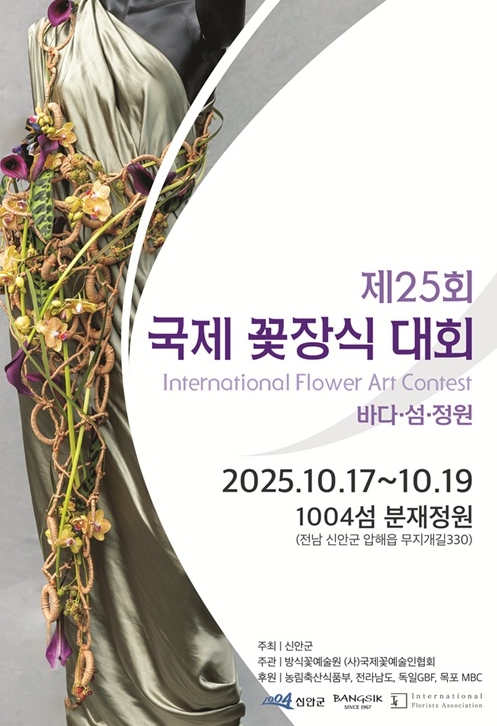[뉴스노크=김인호 기자] 대한민국 K-플라워 예술의 중심으로 떠오르는 신안군에서 ‘제25회 국제꽃장식대회’가 오는 10월 17일부터 19일까지 3일간 압해읍 1004섬 분재정원에서 개최된다.