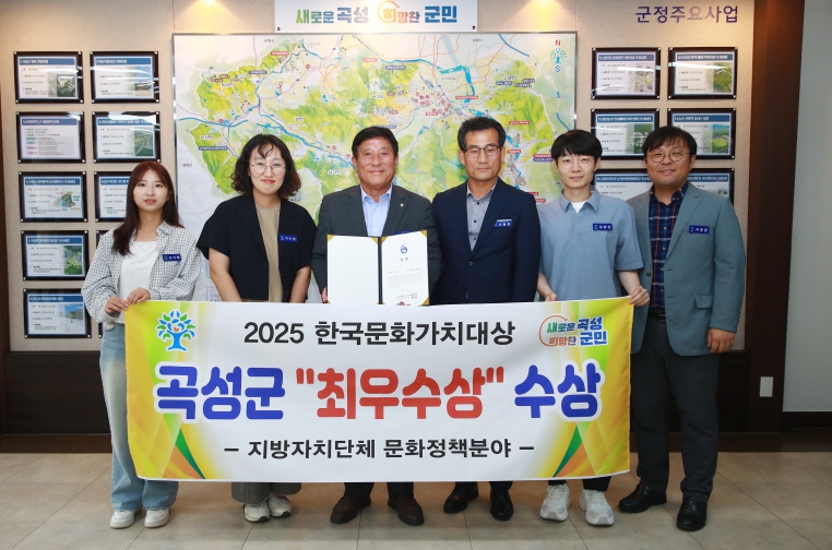 [뉴스노크=김인호 기자] 곡성군이 ‘2025 한국가치문화대상’에서 2년 연속 최우수상을 받으며 지역 문화정책의 우수성을 다시 한번 인정받았다.