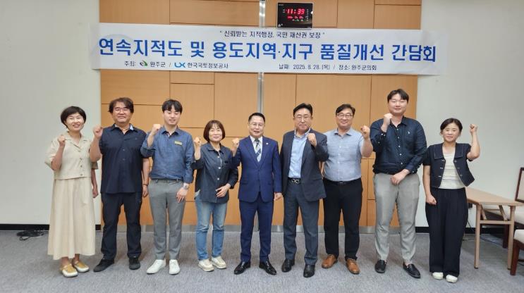 [뉴스노크=김인호 기자] 완주군의회 성중기 예산결산특별위원장은 28일 군의회 문화강좌실에서 ‘연속지적도 및 용도지역·지구 품질개선 간담회’를 열고, 지적행정의 신뢰성과 군민 재산권 보호 방안을 논의했다.