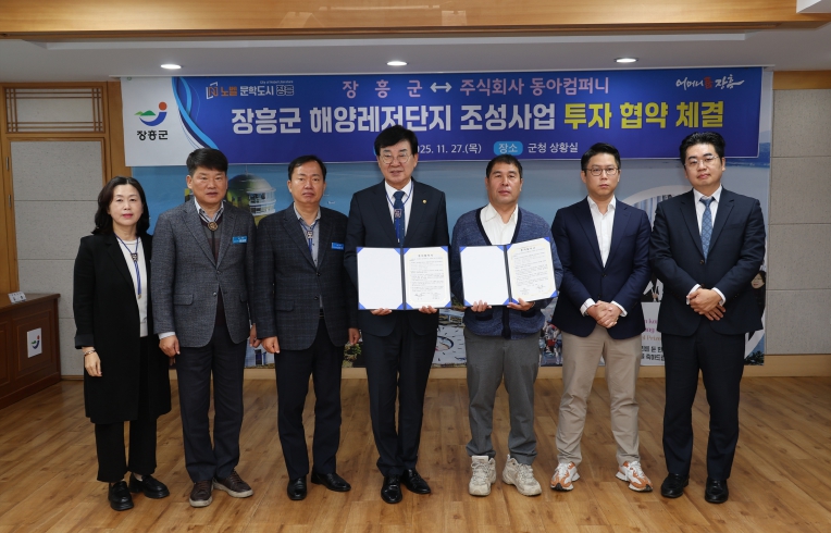 [뉴스노크=김인호 기자] 장흥군은 27일 (주)동아컴퍼니와 150억원 규모의 해양레저단지 조성사업 투자협약을 체결하고, 지역 해양관광산업의 새로운 도약 기반을 마련했다.