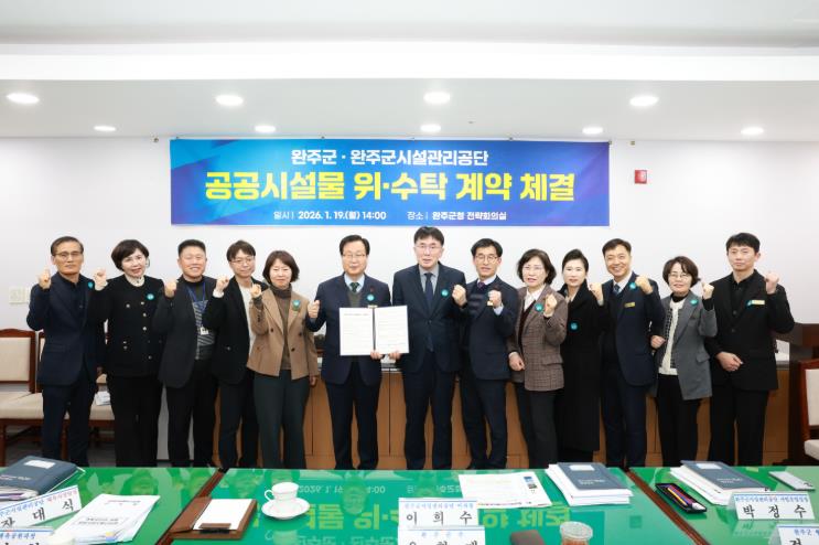 유희태 완주군수는 “합리적이고 투명한 운영을 통해 지역의 새로운 공공기관으로 자리매김하고 있는 시설관리공단의 노고에 감사드린다”며 “신규 사업 위탁을 계기로 완주군과 공단이 함께 협력해 군민이 체감할 수 있는 변화를 만들어 가자”고 말했다.