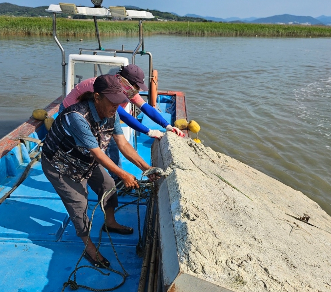시는 집중호우가 지나간 뒤 소조기 기간을 활용해 원형갈대 군락 내 해양쓰레기와 고엽갈대 제거 작업을 진행 중이며, 일부 훼손된 구간에는 주변 건강한 갈대를 이식해 원형구조의 경관을 회복하는 작업도 병행하고 있다.