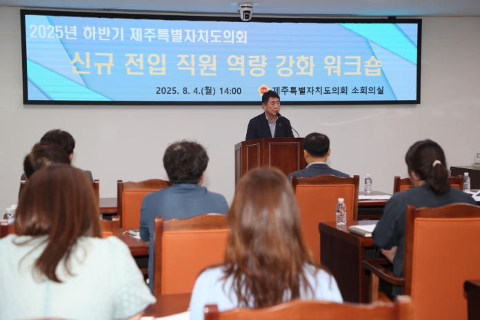 [뉴스노크=김인호 기자] 제주특별자치도의회는 지난 8월 4일 오후 2시, 도의회 의사당 1층 소회의실에서 2025년 하반기 신규 전입 직원 등을 대상으로 역량 강화 워크숍을 개최했다.