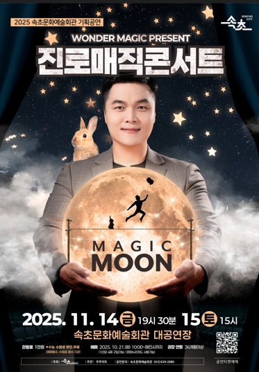 [뉴스노크=김인호 기자] 속초시는 오는 11월 14일 금요일과 11월 15일 토요일 이틀간 속초문화예술회관에서 최형배 마술사의 진로매직콘서트 MAGIC MOON을 선보인다.