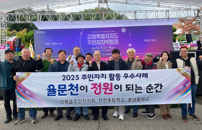 [뉴스노크=김인호 기자] 신북읍 주민자치회가 17일과 18일 동해웰빙레포츠타운에서 열린 ‘2025 강원특별자치도 주민자치박람회’에서 ‘율문천이 정원이 되는 순간’을 주제로 지역 특색을 살린 자치활동을 펼쳐 장려상을 수상했다.