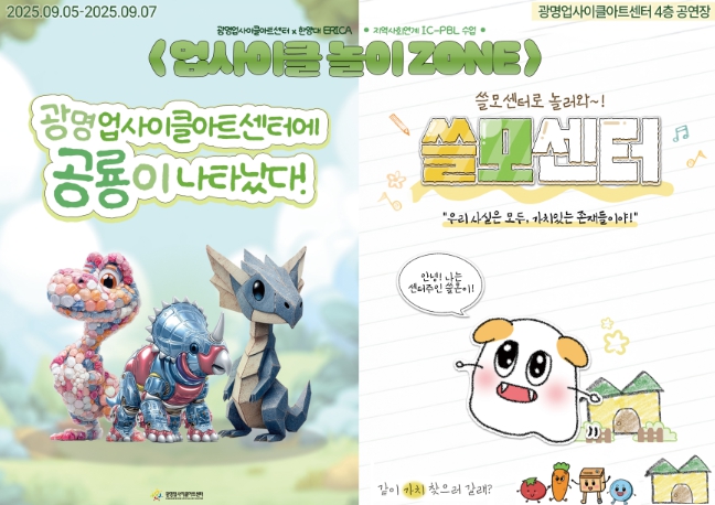 지난 학기 학생들이 직접 기획한 ‘광명시 공공공간 정체성과 시민 참여’ 콘텐츠가 9월 5일부터 7일까지 업사이클아트센터 4층 공연장에서 체험 프로그램 ‘업사이클 놀이존’으로 시민들에게 선보인다.