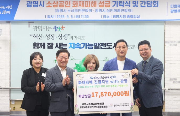[뉴스노크=김인호 기자] 광명시 소상공인들이 지난 7월 발생한 소하동 아파트 화재로 피해를 입은 주민들을 위해 모은 성금 1천 800여만 원을 기탁했다.