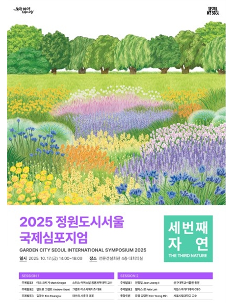 [뉴스노크=김인호 기자] 서울시는 오는 17일 동작구 전문건설회관 대회의실에서 자연과 도시의 조화와 공존, 정원의 미래 역할 등에 대해 논의하는'2025 정원도시서울 국제심포지엄'을 개최한다. ‘세 번째 자연’을 주제로 정원‧조경 분야의 국내외 전문가들이 한 자리에 모일 예정이다.