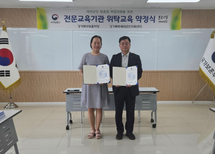 [뉴스노크=김인호 기자] 경기북부보훈지청은 8월 28일, 경기북부제대군인지원센터 회의실에서 경복대학교 평생교육대학(학장 권승혁)과 2025년 제대군인 전문교육기관 위탁교육(드론운영 실무특화 과정) 약정식을 진행했다.
