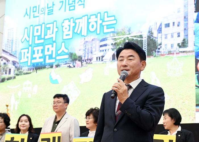 김동근 시장은 “1963년 시로 승격되고 1971년 제정된 의정부 시민의 날은 우리 의정부의 자긍심을 함께 기념하는 뜻깊은 날이다. 각자의 자리에서 헌신해 오신 시민 여러분께 깊은 감사의 마음을 전한다”며 “비로 인해 야외에서 함께하지 못했지만, 시청의 열린 공간인 ‘모두의 운동장’과 ‘시민갤러리’를 시민과 함께 활용하며 언제 어디서나 시민이 주인인 ‘열린 의정부’의 의미를 담아냈다”고 말했다.
