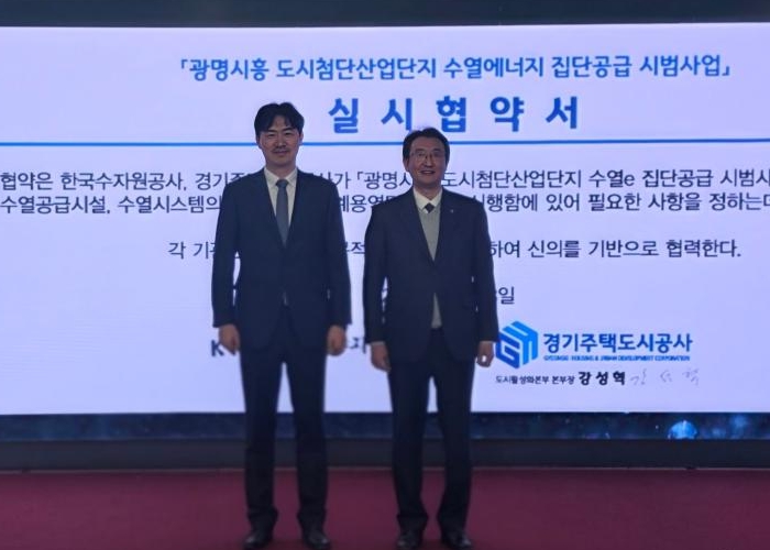 [뉴스노크=김인호 기자] 경기주택도시공사(GH)는 3일 GH 수원 본사 9층 역량개발센터에서 한국수자원공사(K-water)와 함께 ‘광명시흥 도시첨단산업단지 수열에너지 집단공급 시범사업’ 추진을 위한 실시협약을 체결했다고 밝혔다. 이 자리에는 양 기관 관계자 약 30명이 참석했다.