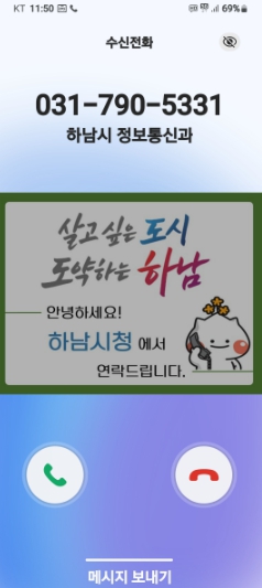 | ▲ 하남시, 전화 한 통에도 신뢰를 더하다… 행정전화 발신정보 알리미 서비스 도입 |