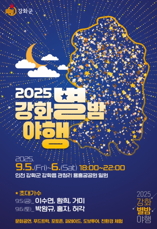 박용철 강화군수는 “강화별밤야행은 단순히 공연을 관람하는 축제가 아니라, 도심 곳곳을 거닐며 강화의 역사와 문화를 체험하는 ‘별이 빛나는 밤의 향연’”이라며 “군민과 관광객 모두가 안전하고 편안하게 즐길 수 있도록 철저히 준비해 특별한 밤을 선사하겠다”고 말했다.