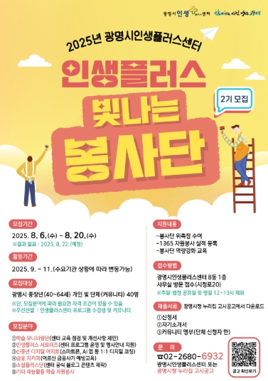 | ▲ 2025년 광명시인생플러스센터 인생플러스 빛나는 봉사단 모집 안내문. |
